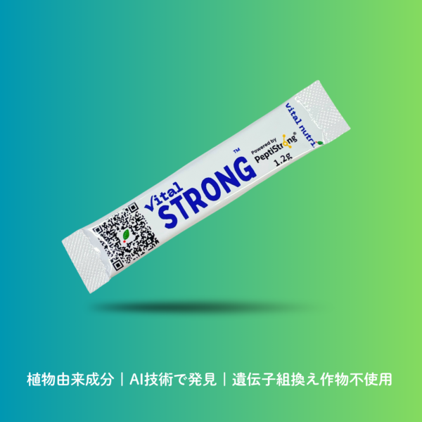 Vital STRONG™ is a next-generation muscle health supplement formulated with PeptiStrong®, a clinically studied, plant-derived peptide complex sourced from fava beans (Vicia faba). Identified through advanced AI-assisted peptide discovery, PeptiStrong® is developed to support muscle health through multiple biological pathways associated with strength adaptation and physical performance.