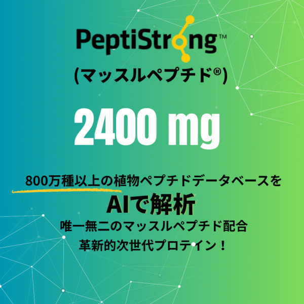 800万種以上の植物ペプチドデータベースをAIで解析。日本初のマッスルペプチド配合、革新的次世代プロテイン!