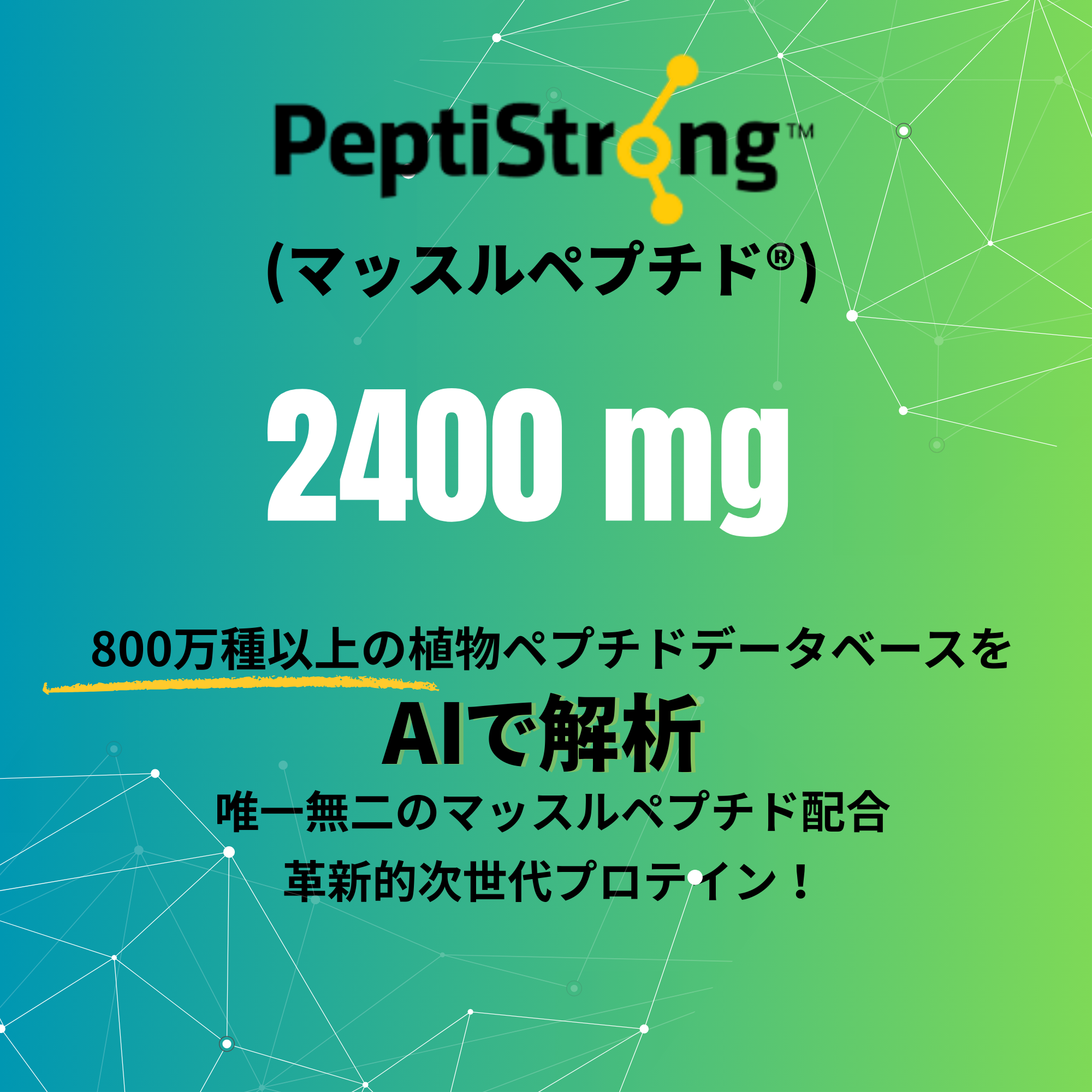 主な成分: PeptiStrong® – AI(人工知能)システムを利用して開発された植物ベースの筋肉ペプチド
